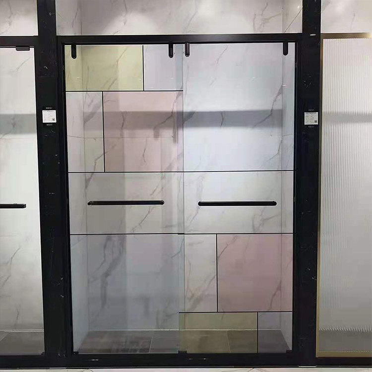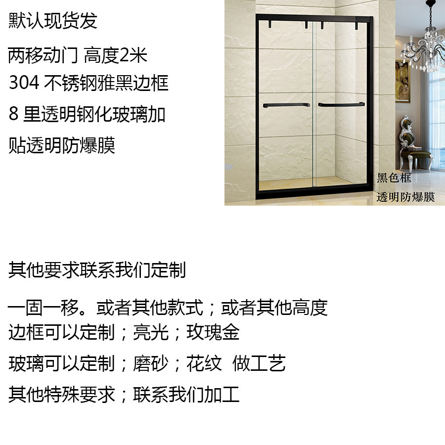 Custom shower room one-shaped tempered glass partition 304 stainless steel bathroom mobile door bathroom door