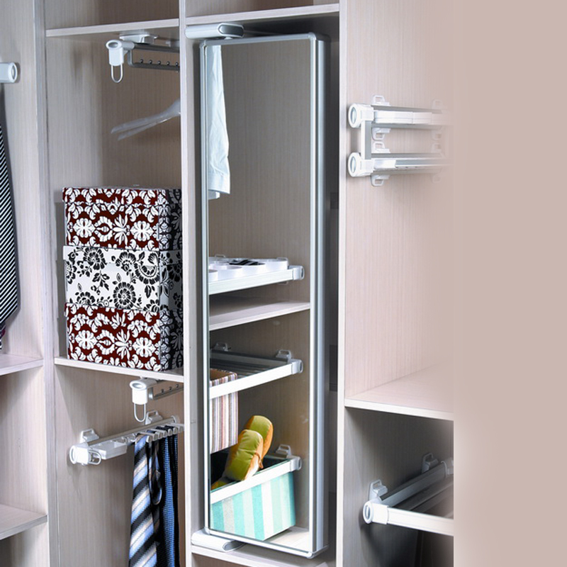 (Maple Leaf Hardware)Simple fashion wardrobe accessories Space aluminum rotating fitting mirror makeup storage rack