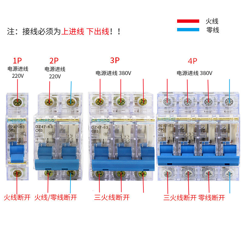 Shanghai People's C45 transparent small circuit breaker air switch DZ47-63A1P2P3P4P32A air open micro-break