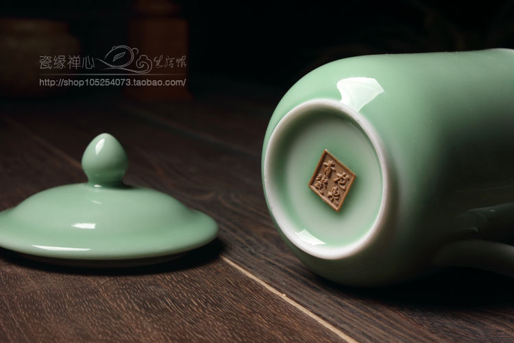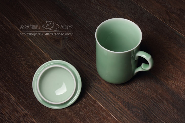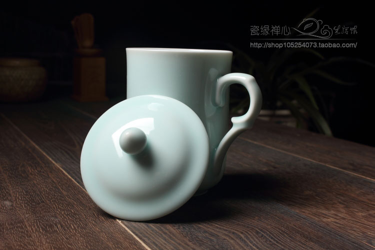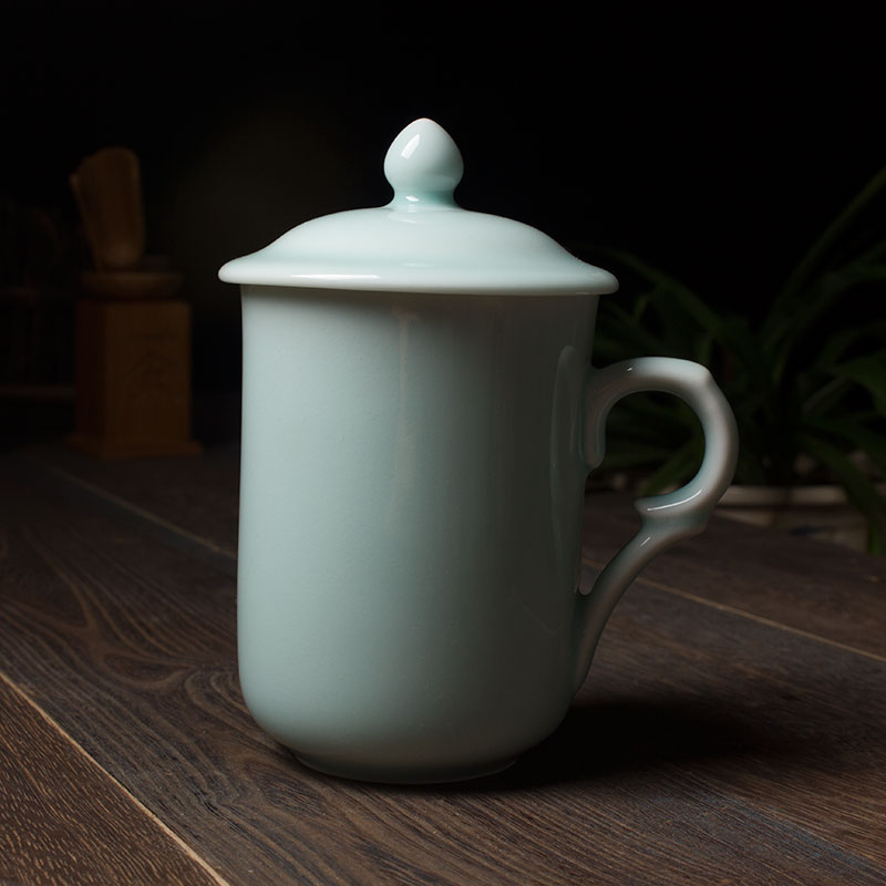 Celadon Ceramic Tea Cup with Lid Boss Cup Meditation Cup Creative Porcelain Conference Cup Office Cup Tea Set Gift