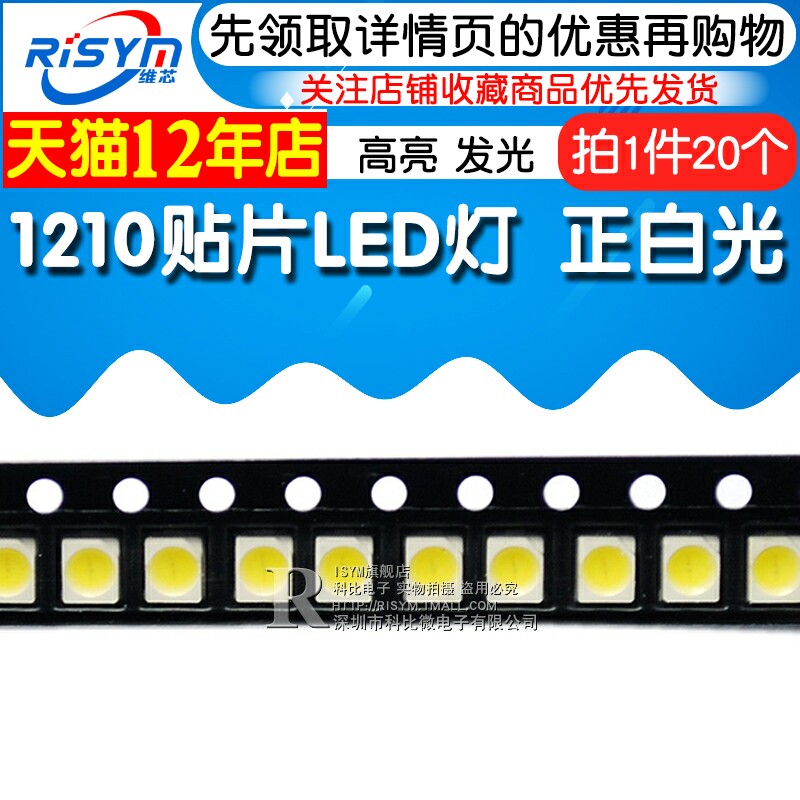 Risym White 1210 patch LED lamp High-bright light-emitting diode LED 3528 is white 20