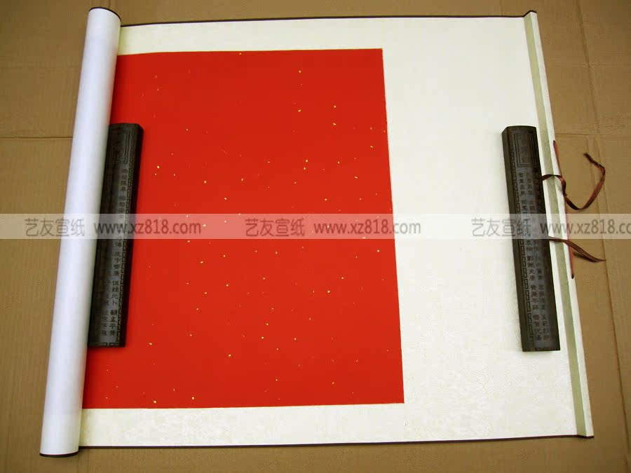 Xuan paper blank picture scroll four feet big red bronzing horizontal batch full damask fine mounting painting scroll painting and calligraphy scroll custom-made