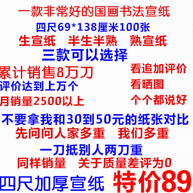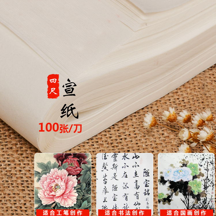 Four feet raw rice paper half raw and half cooked Xuan six feet to open the Chinese painting calligraphy creation of special works Anhui Jing County Gong Pen