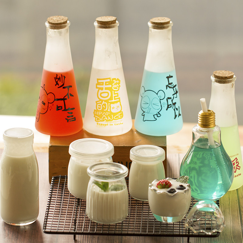 100ml pudding bottles 4pcs (with lid and spoon) 150ml vertical stripe bottles 4pcs (with lid and spoon) 200ml Pudding bottles 4pcs (with lid and spoon) 250ml high waist bottles