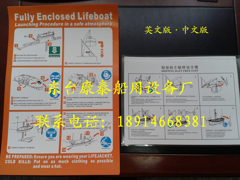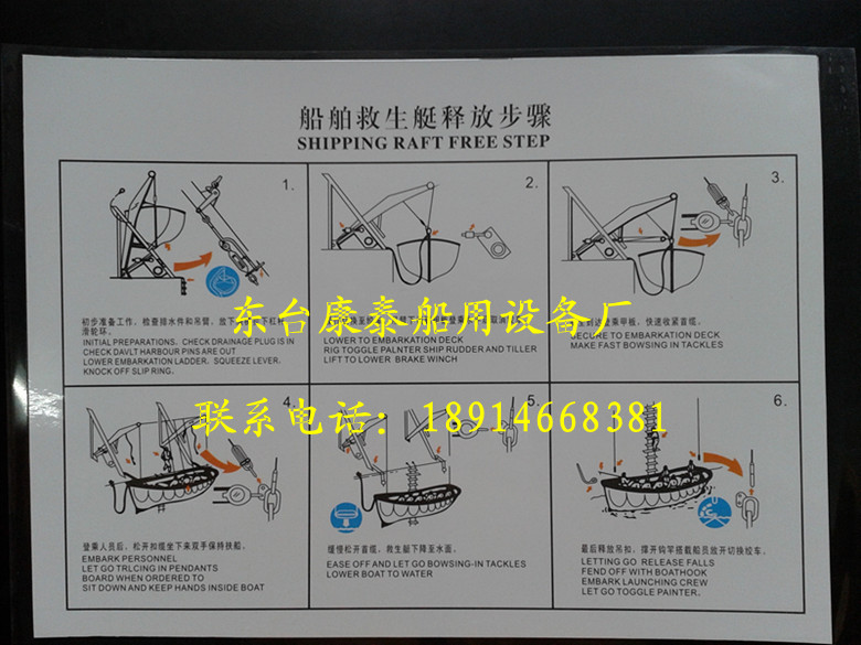 Ship lifeboat release Steps Chinese version English version of marine schematic flatulled liferaft usage notes