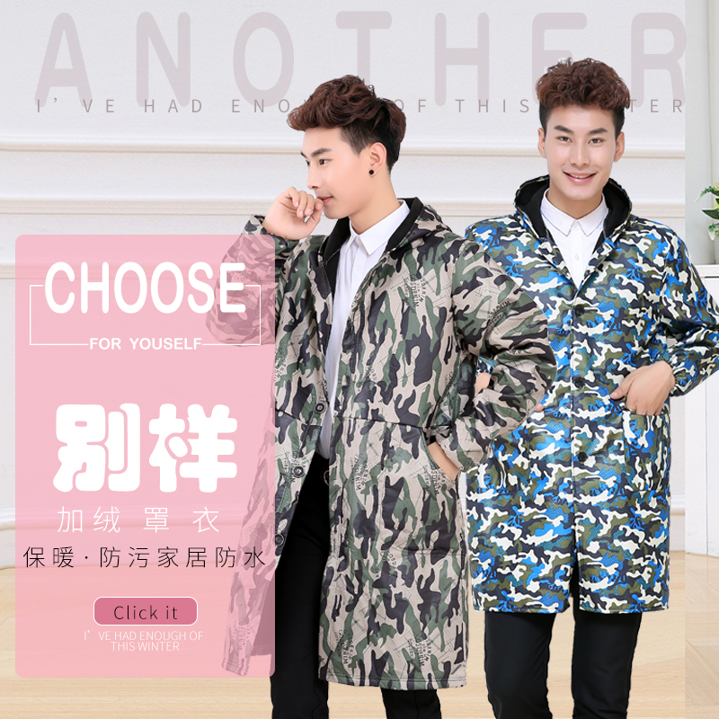 Velvet overcoat adult apron long sleeve autumn and winter fashion anti-fouling kitchen women's work clothes men's custom LOGO