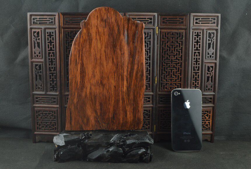 Hong Hao Ruigong Old wood Hainan Huanghuali Flower full moon night wood carving Purple oil pear office entrance root carving ornaments