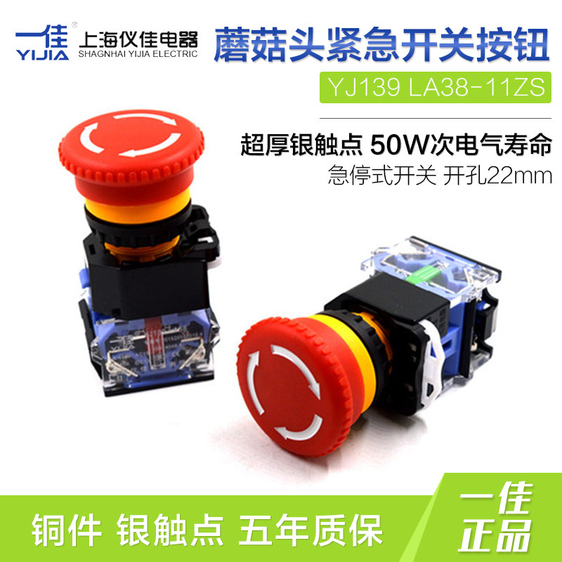 A good emergency stop button switch YJ139 LA38-11ZS emergency stop mushroom head push the switch to the switch of 22MM