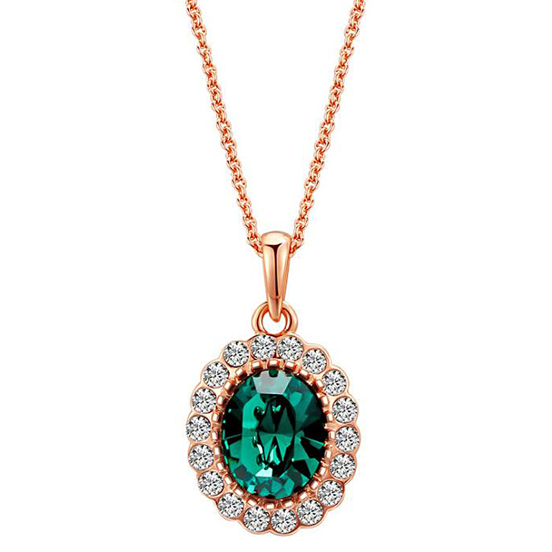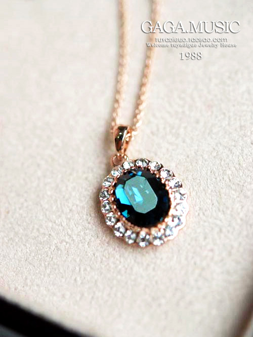 Korean Version Refined Oval Sapphire Ruby Color Crystal Necklace Grandmother Green Lock Bone Chain Female Ornament