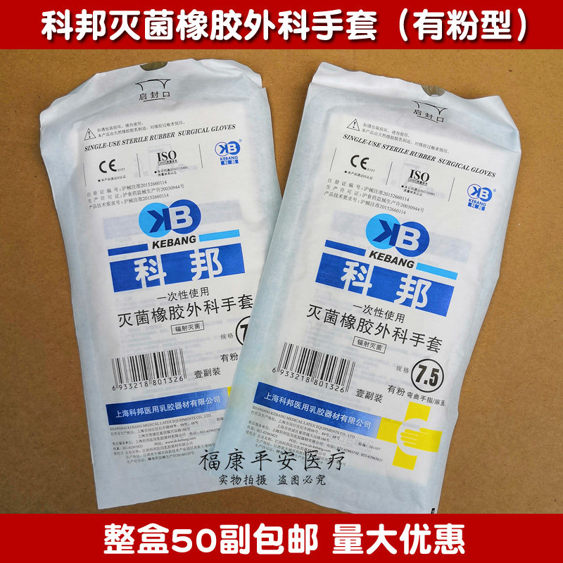 Medical Shanghai Kebang powdered rubber gloves latex gloves surgical gloves disposable sterilization gloves