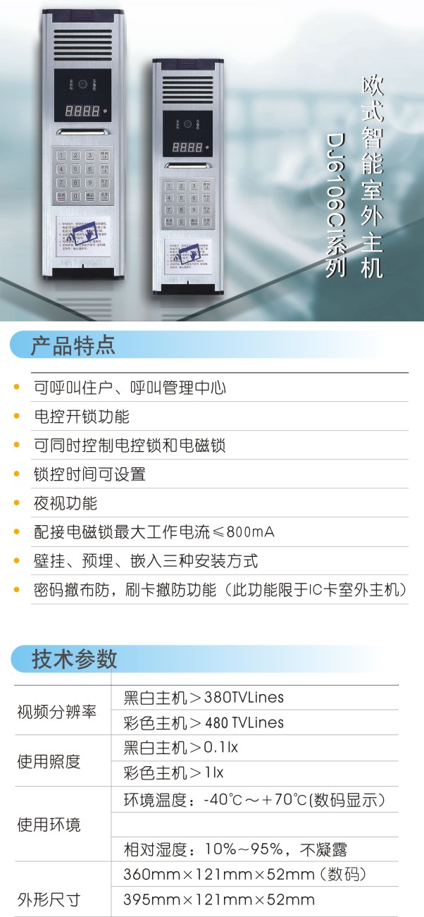 Bay visual building intercom access control unit host GST-DJ6106CI