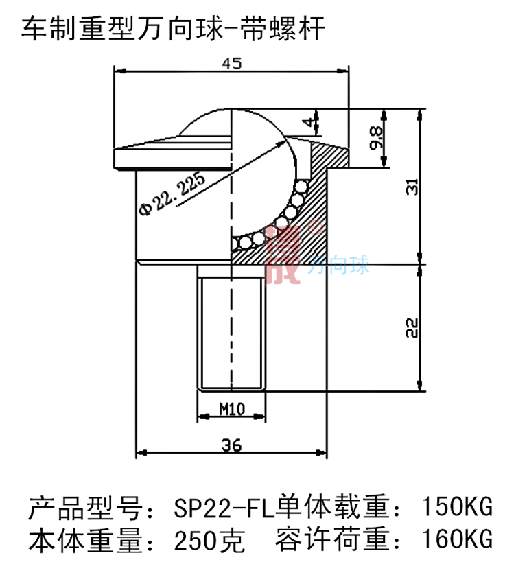 Heavy duty universal ball car with screw M10 SP22-FL universal ball bearing ball conveying ball bullseye wheel factory