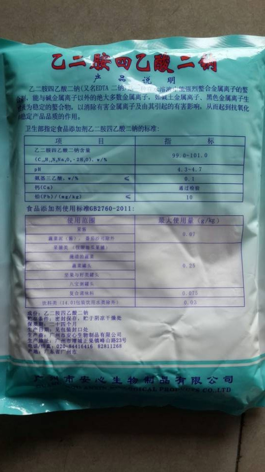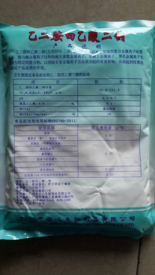 Guangdong Reassurance of Ethylene Diaminetetraacetic Acid Disodium food EDTA II Sodium Food Antioxidants 1000g