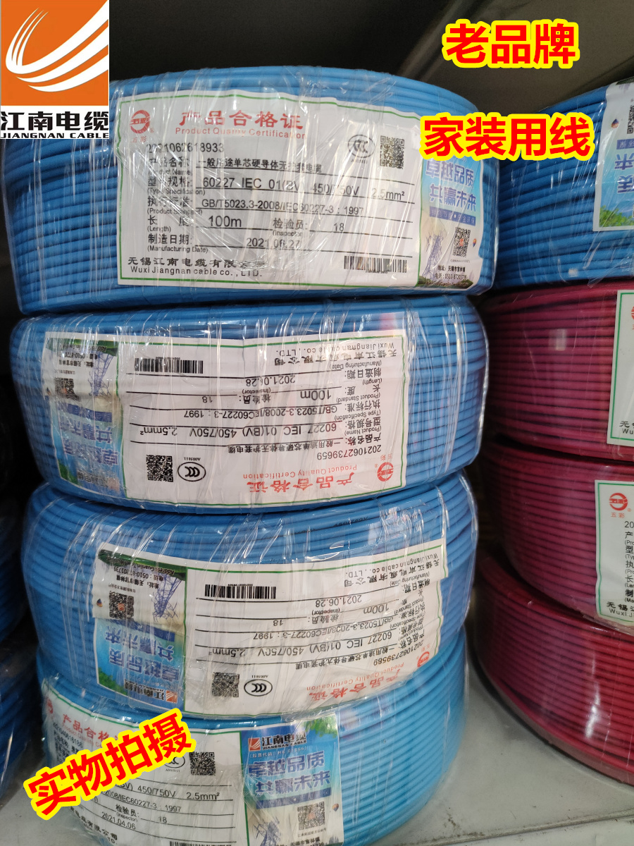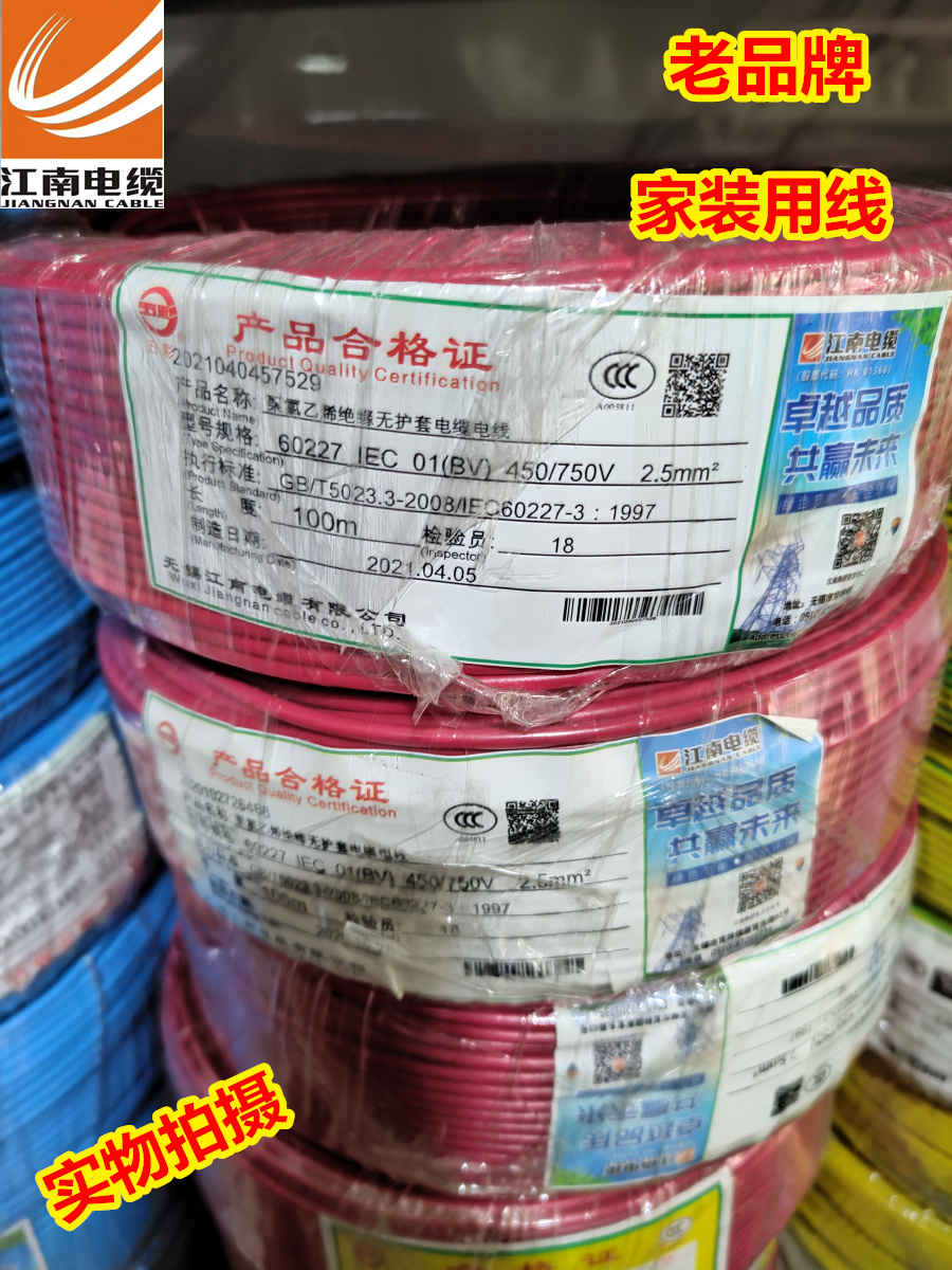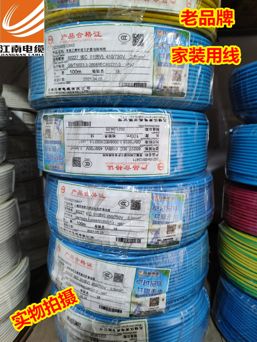 Jiangnan colorful cable BV1 5 2 5 4 6 square single-core copper core wire national standard single-strand hard line home improvement line