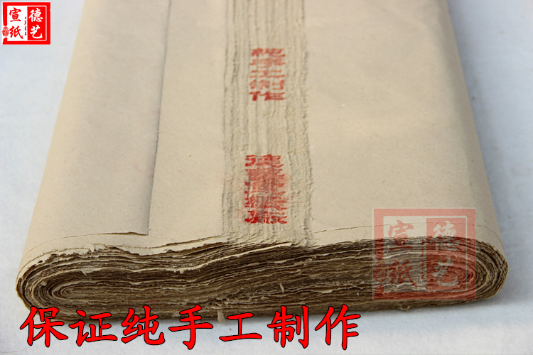 Four feet of hand-thickened raw edge paper study room four treasures half-cooked small Kai rice paper calligraphy practice paper