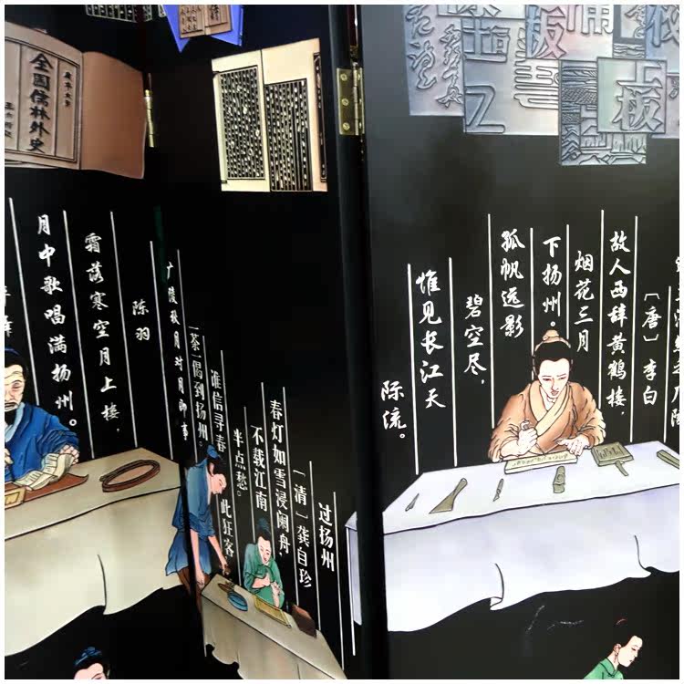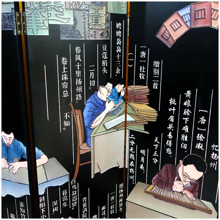 Lacquer Art Engraving Black Ground Carved version printed Six-fold Xuanguan Screen partition Yangzhou lacquer ware New Chinese home decoration