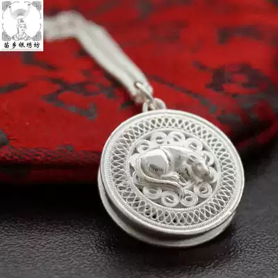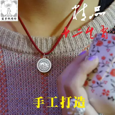 Miao Township Silver embroidery square S99 foot silver Boutique Silk twelve Zodiac birthday bronze drum pendant pendant design customized