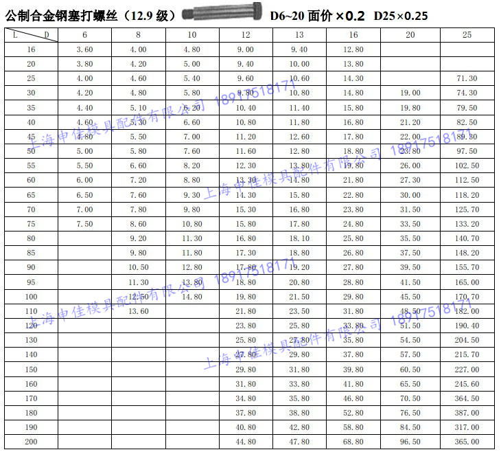 Φ20×160Φ20×170Φ20×180Φ20×190Φ20×200Φ20×210Φ20×230