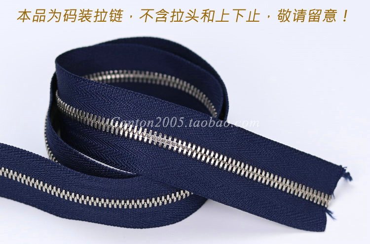 No. 3 two-way deep blue cloth silver color tooth 50 cm
