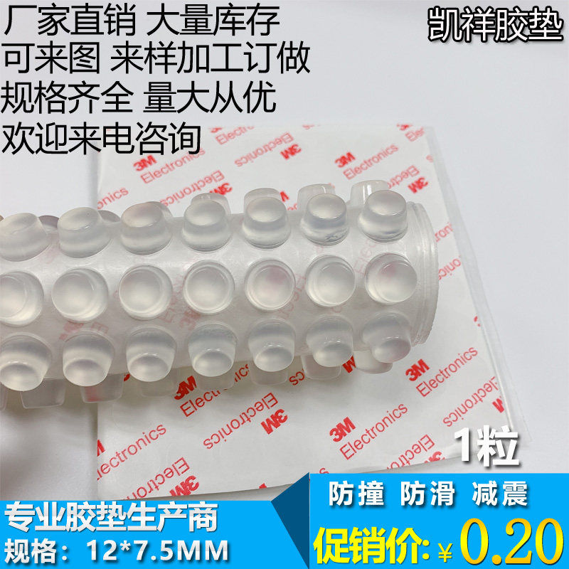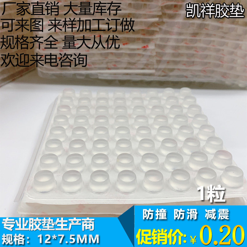 Dongguan spot self-adhesive back glue transparent tape pad anti-collision rubber particles cylindrical diameter 12mm thickness 7 5mm 1 grain
