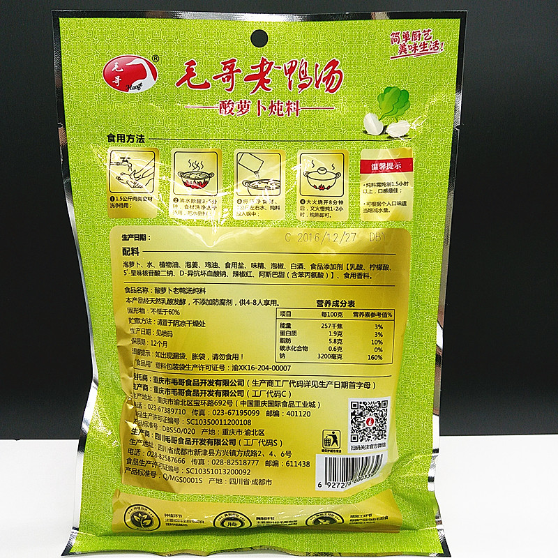 Limited area full 2 bags Mao Gothic old duck Tonsour Roof taste simmering with pork hooded pork belly ox mutton soup sour and tasty