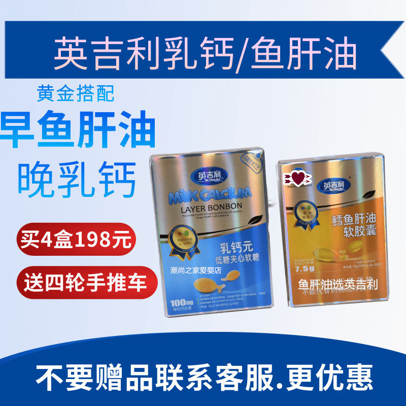 Shoot 4 boxes of 198 yuan to send the car English milk calcium children's calcium gold with multi-soft sandwich fudge fish oil iron and zinc