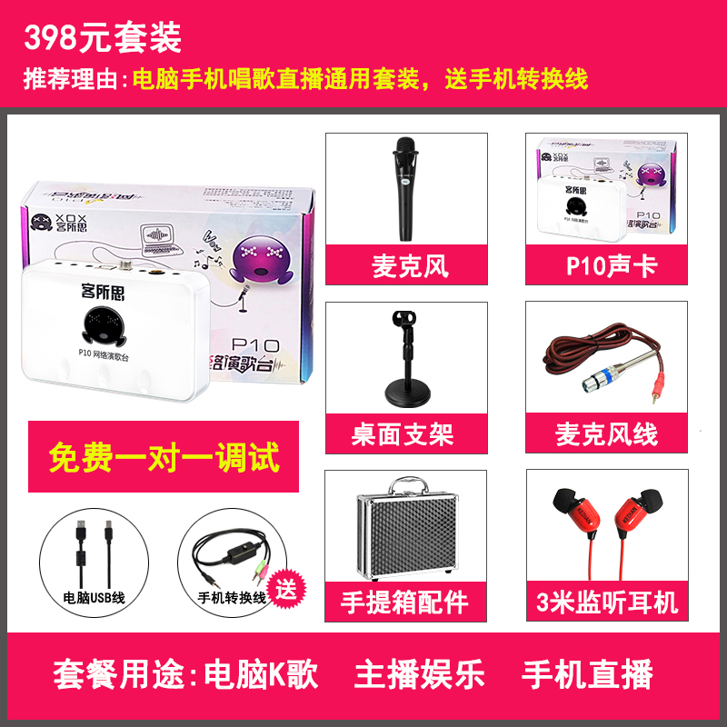 Guest's thought P10 USB external link sound card desktop pen electric mobile phone universal anchor recording sound card full set of fumbling fast hand live K song yelling Mccapacitive microphone suit