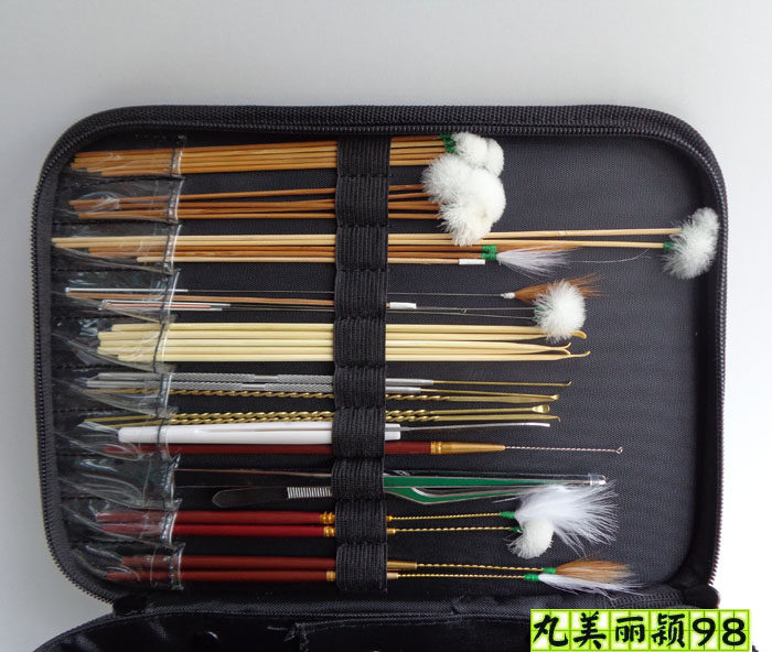 Sichuan professional ear digging ear picking tool ear digging advanced leather bag 43 pieces set - free ear expander ear candle