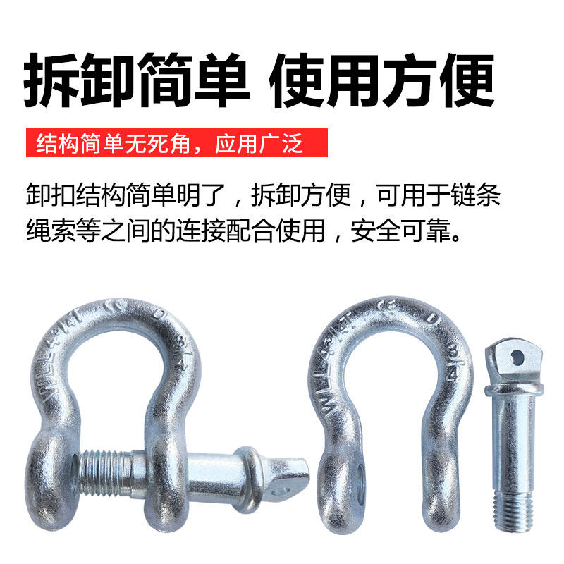 American bow shackle High strength lifting ring Lifting lifting tool Alloy steel die forging U-shaped horseshoe buckle 2T-55 tons