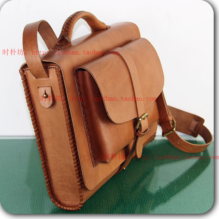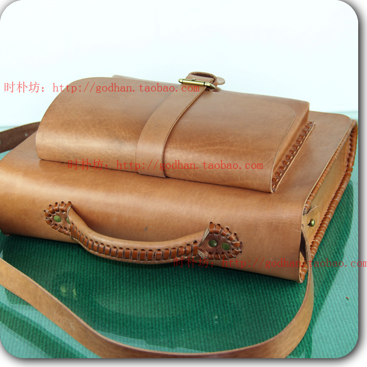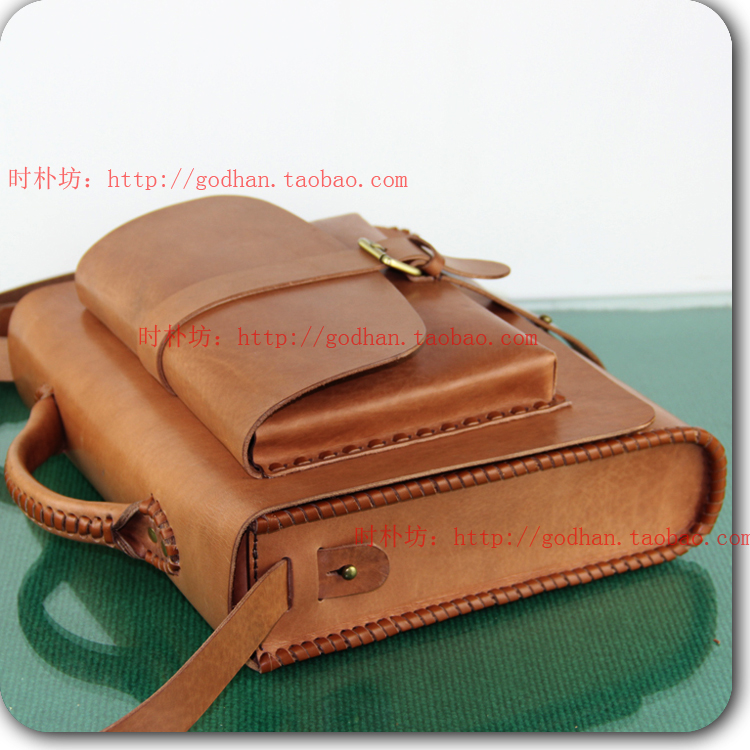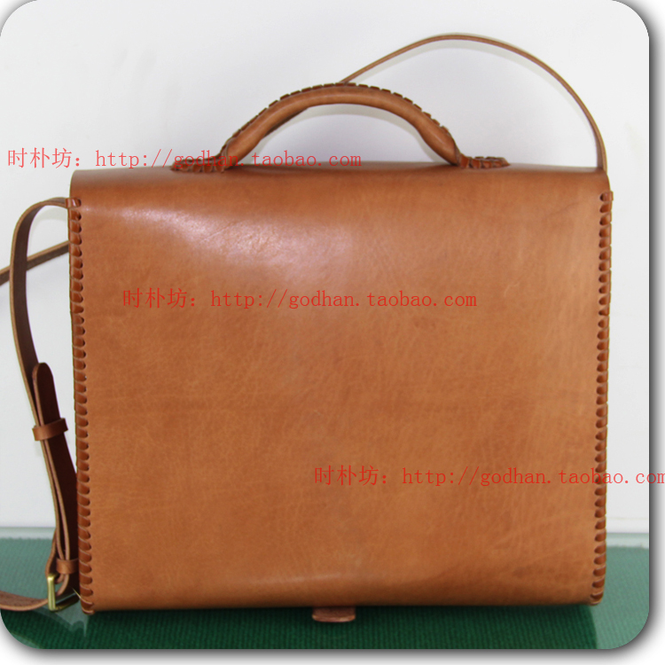 Classic handmade bag top layer hard leather shaped bag leather rope stitching business casual men's thick leather bag
