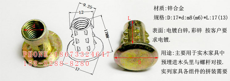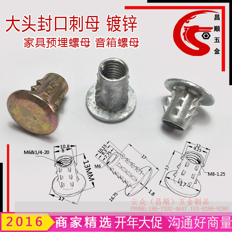 Internal and external teeth nut zinc alloy stab mother blind hole internal and external tooth seal tip nut home innate screw cap M6