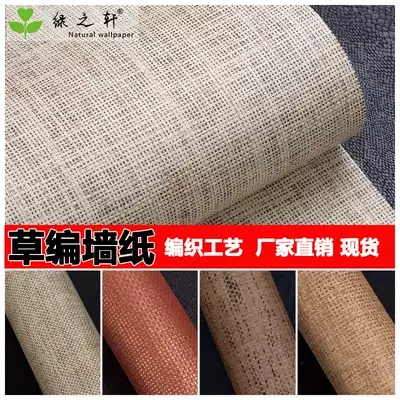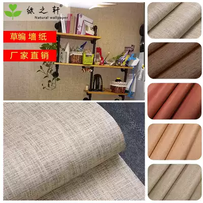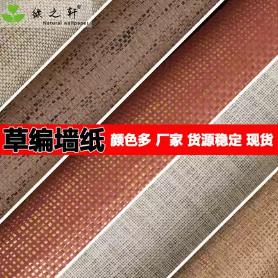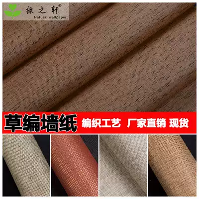 Natural environmental protection straw wallpaper small lattice plant wallpaper Chinese classical Teahouse living room Buddha system Zen background wall