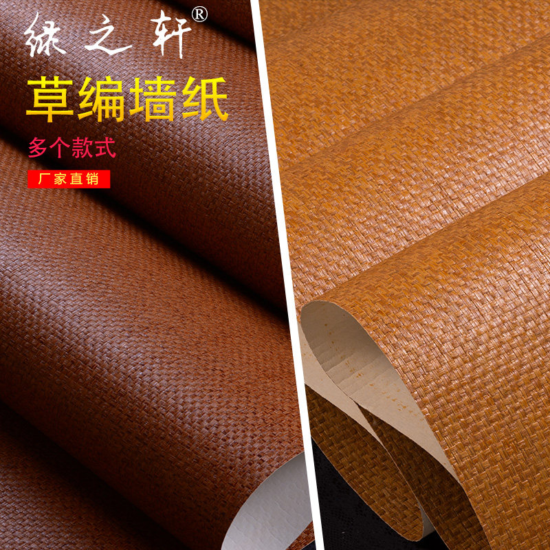 Environmentally friendly straw woven wallpaper Chinese imitation bamboo small plaid wallpaper retro nostalgia Buddhist meditation tea room suspension-style ceiling rattan