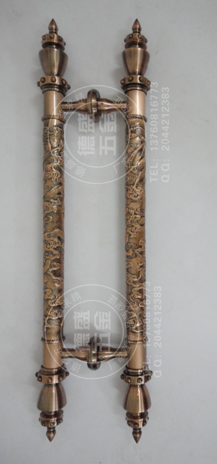 Pure bronze Chinese antique large door handle embossed Longfeng Splendid Wooden Door Handle Retro Glass Hotel Door Handle
