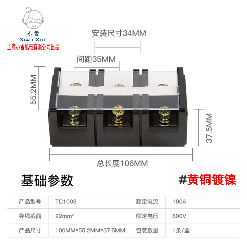TC-1003 large current TC wiring terminal flame retardant wiring row copper wiring board TC1003 100A3P