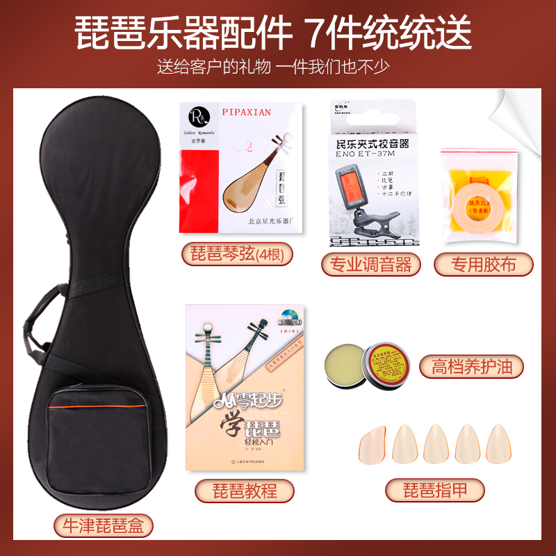 Children's beginner mahogany pipa (send bag + nail + tape + spare string) Children beginner mahogany lute (send bag + nail + tape + spare string) Children's rosewood shaft phase pipa (send box + nail + tape + spare string + tuner + tutorial) Adult beginner mahogany pipa (send bag + nail + tape + spare string) Adult mahogany white bone strip pipa (send bag + nail + tape + spare string) Adult rosewood shaft phase pipa (send box + nail + tape + spare string + tuner + tutorial) Adult rosewood shaft opposite carving (send box + nail + nail + Adhesive tape + spare string + tuner + tutorial) Order to send log protection wax (environmental protection anti-cracking)