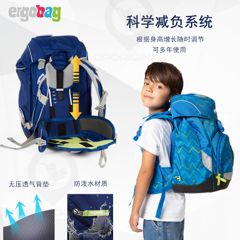 Germany imported ergobag double shoulder elementary school children's school bags for men and women children's protection and weight loss and weight loss easy to treasure