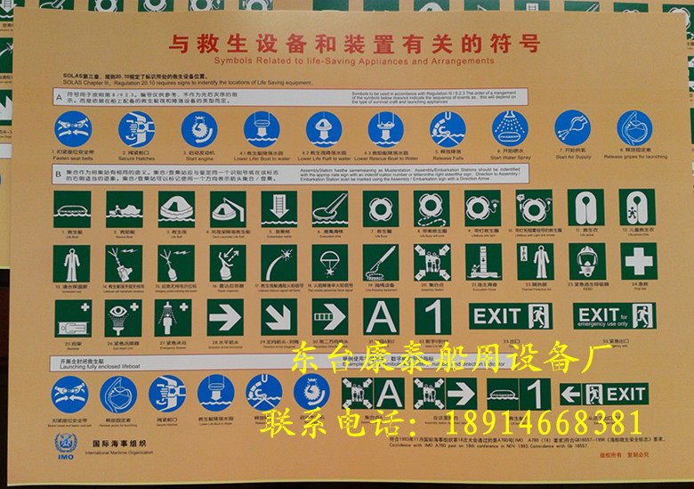 Symbols related to life-saving equipment and devices Marine safety icons wall chart Marine life-saving schematic diagram