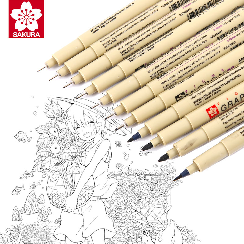 Japan Cherry blossom needle pen Waterproof hook line pen Comic stroke line animation design Hook edge pen Hand-drawn comic special pen Drawing pen Stick figure pen set Cherry blossom pen