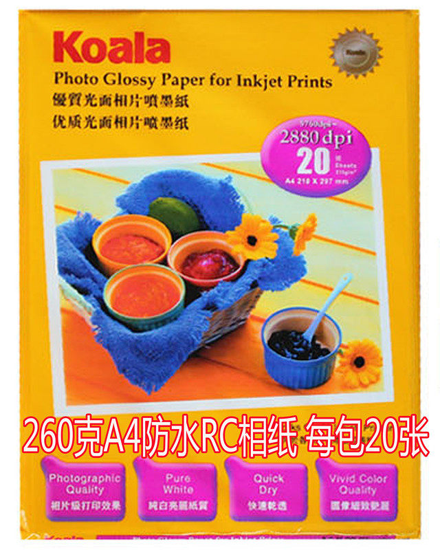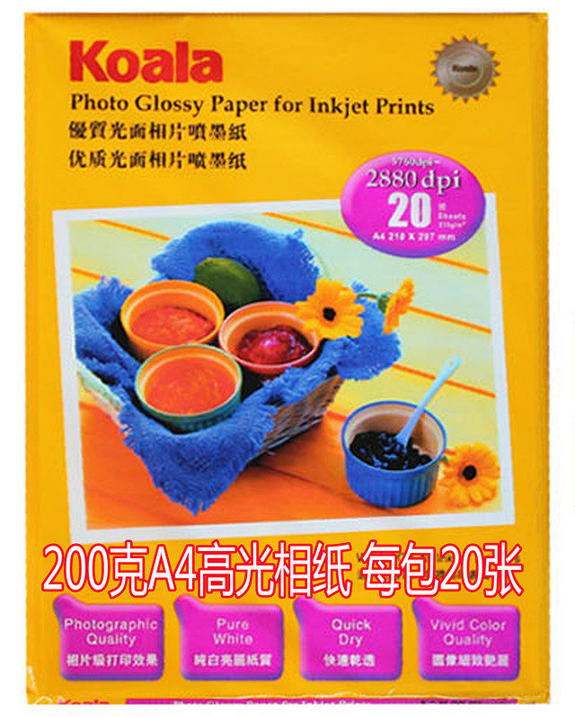 200g A4 high-gloss photo paper 20 sheets per pack 230g 6-inch thousand-color glossy 20 sheets per pack 230g 7-inch Koala 100 sheets per pack 230g 6-inch Colada 10 sheets per pack