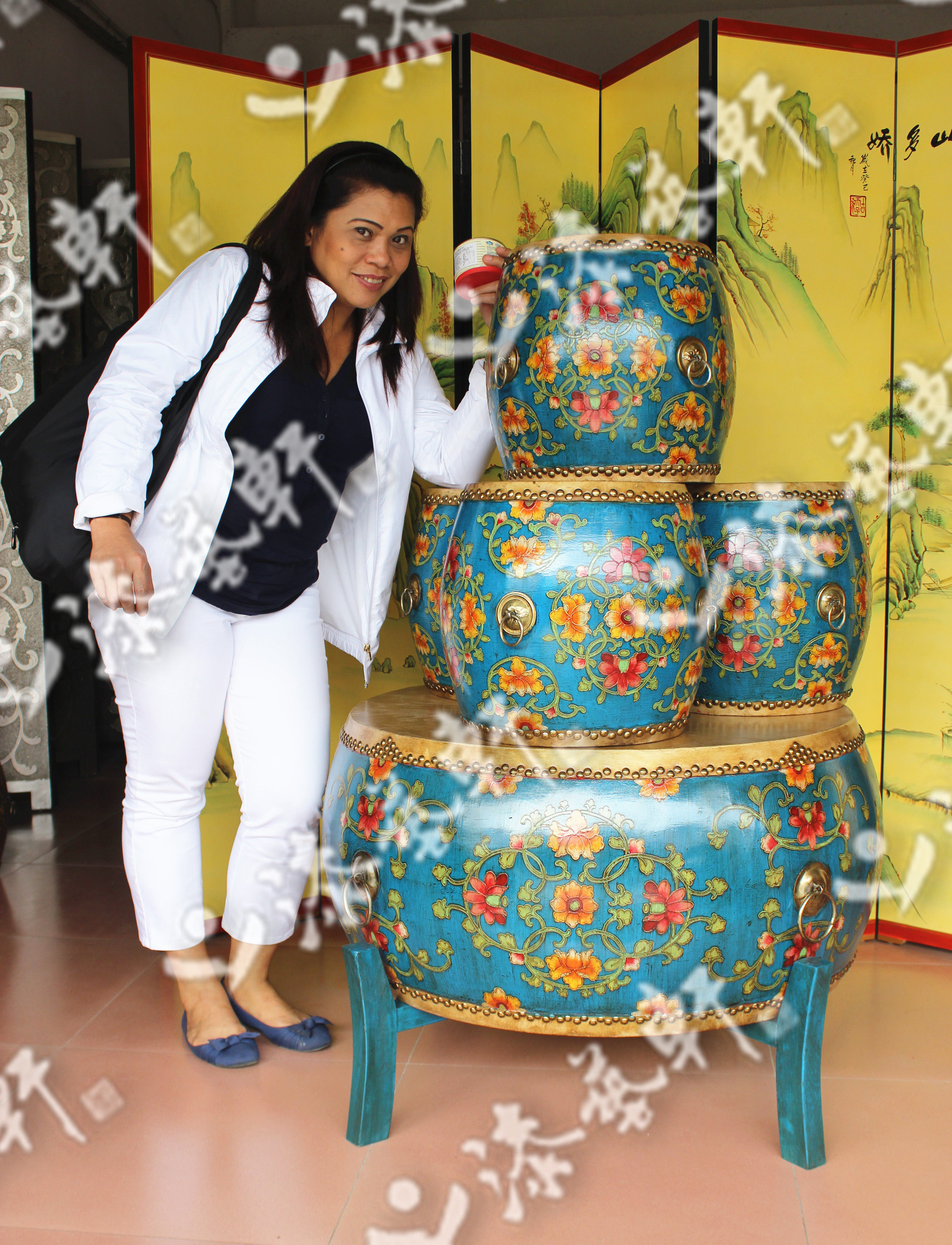 White and yellow drum five-piece drum face painting totem color custom