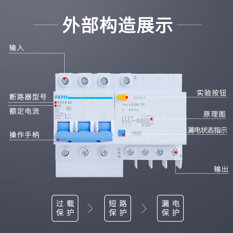 Manufacturer Direct sales FATO Huatong DZ47LE series Small earth leakage circuit breaker DZ47LE-63 4P Specifications complete