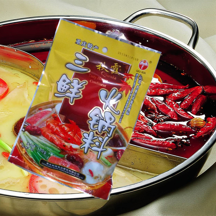 (take 3 copies) Chongqing Qiuxia Three fresh hot pot soup bottom 170g clear soup hot pot stock Sichuan flavor Water Margin