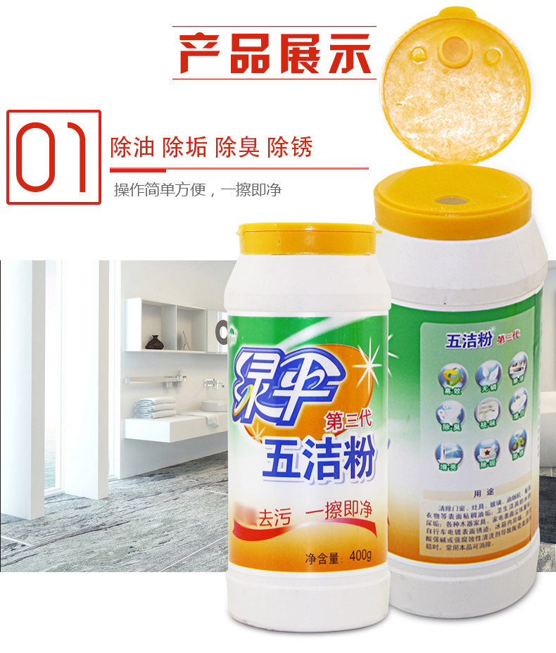 Green umbrella third generation five cleaning powder 2 bottles strong decontamination powder to oil stainless steel cleaner to remove rust and scale