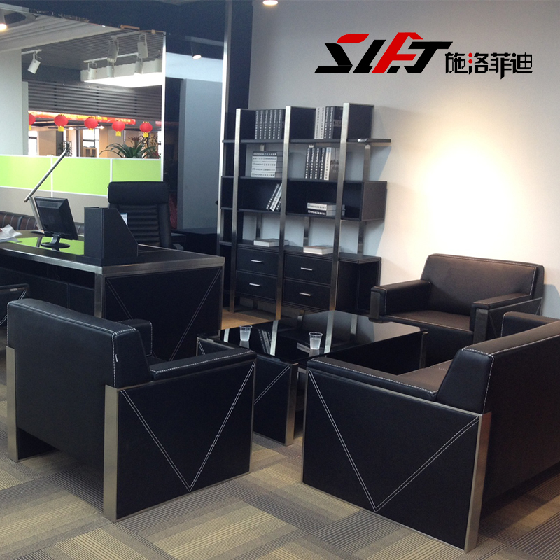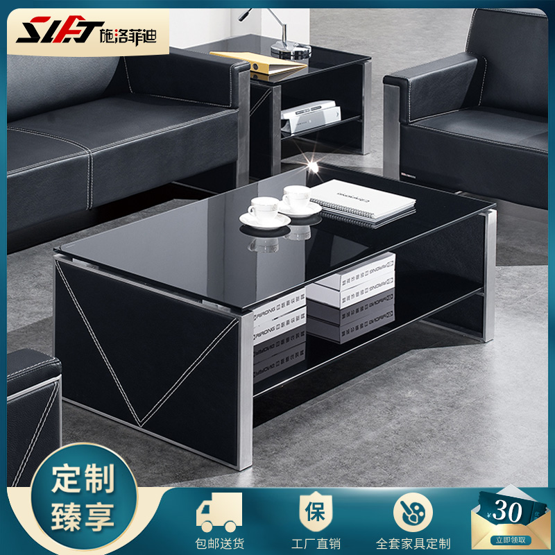 Shlofidi office furniture modern office coffee table tempered glass simple stainless steel veneer office coffee table