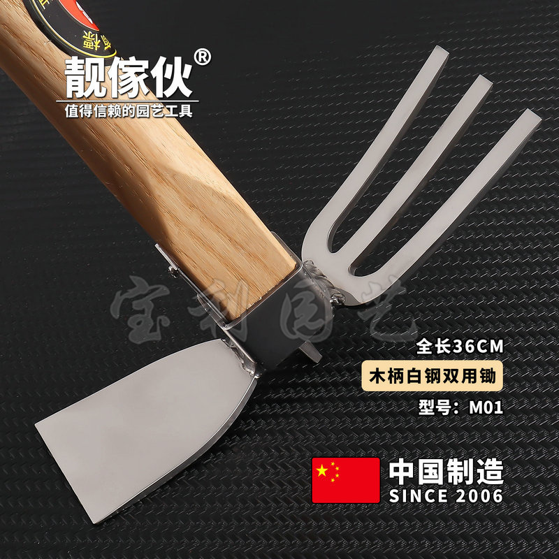 M01 Wooden handle double-purpose hoe M02 Wooden handle pointed hoe M03 Wooden handle single-use hoe M04 Wooden handle four-tooth hoe K01 White steel double-use hoe K02 White steel pointed hoe K03 White steel single-use hoe K04 White