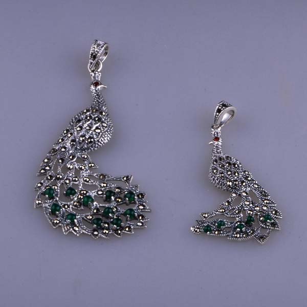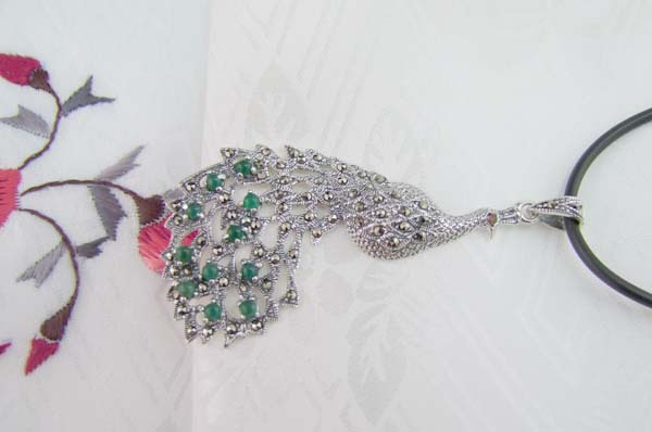 Wenze Centenary Silver Workshop Wenze Brands Commercial City Studded Precious Stones Peacock Silver Pendant Tesilver Silver Item Pendant NO341