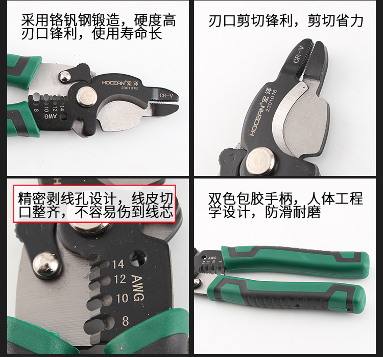 Thick cable with blade stripping pliers with peeling seven-in-one electrician pliers 6 inches 8 inches small high-voltage cable cutting pliers