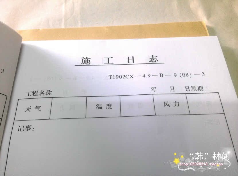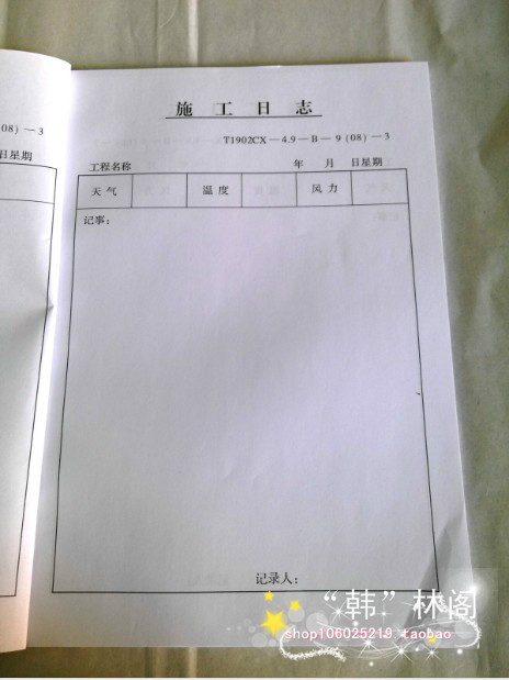 Vertical construction log 80g double adhesive paper construction diary office supplies certificate Jiangsu, Zhejiang, Shanghai and Anhui 10 copies