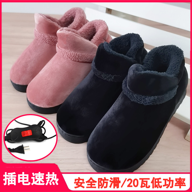 Electric heating shoes plug-in electric foot warmer treasure electric heating shoes charging can walk men and women electric heating slippers warm cotton shoes heating shoes